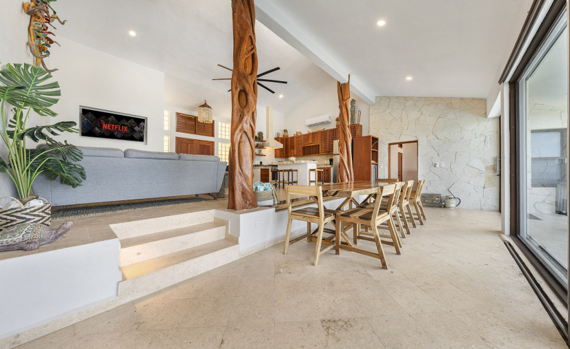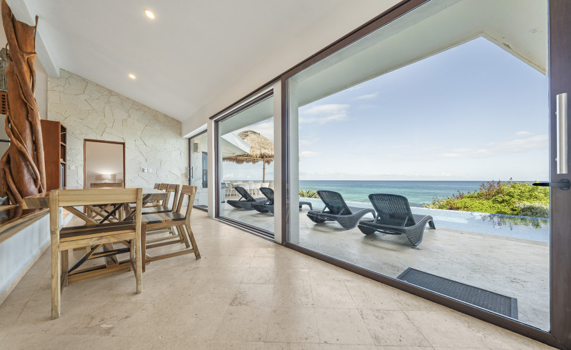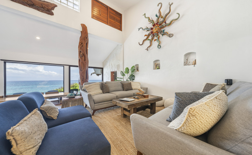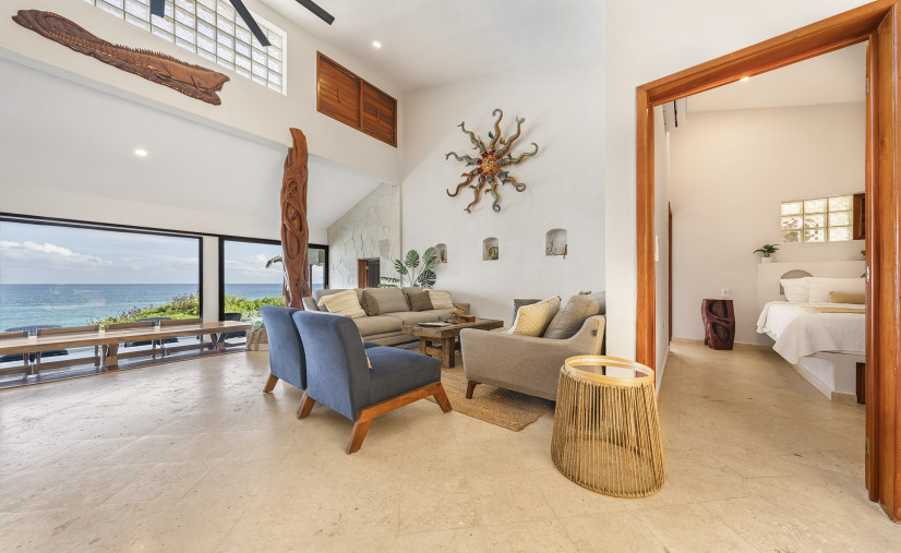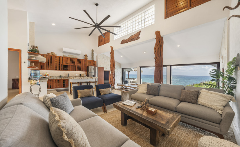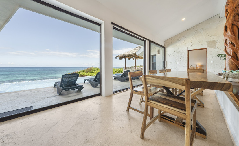 Casa Toloc’s extra-large entertaining space features 20+ feet of glass framing those jaw-dropping ocean views.