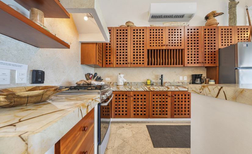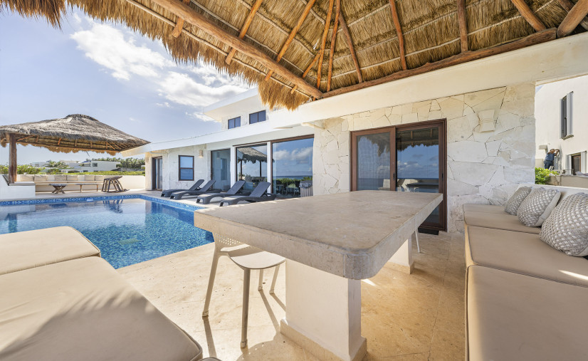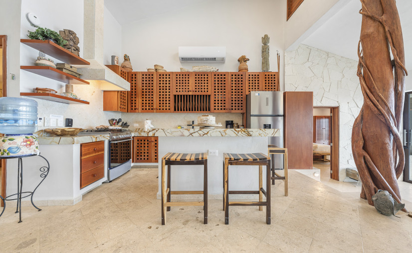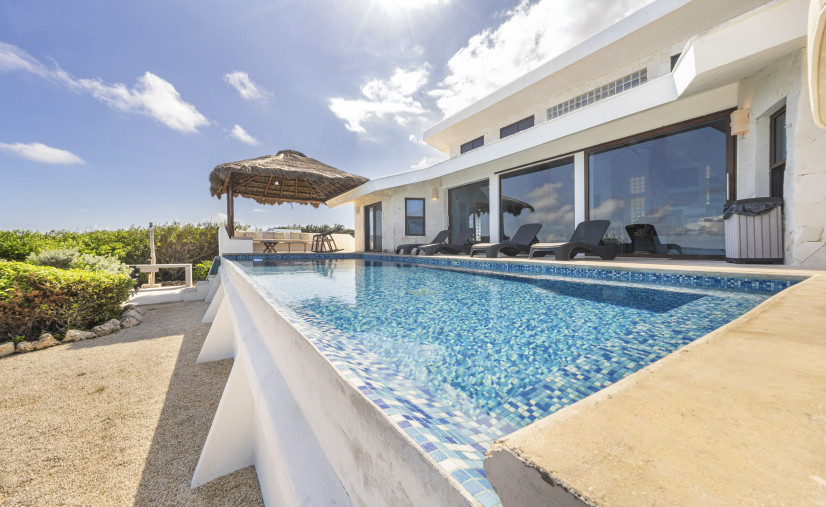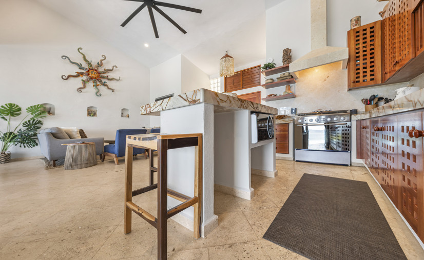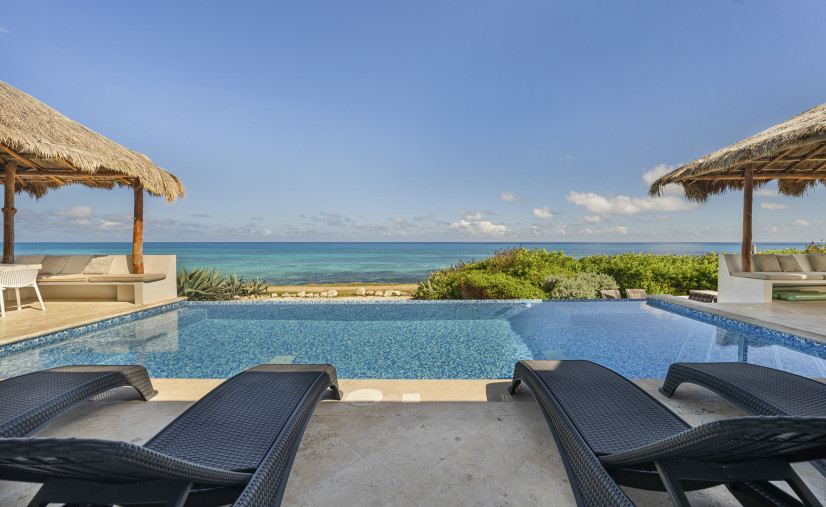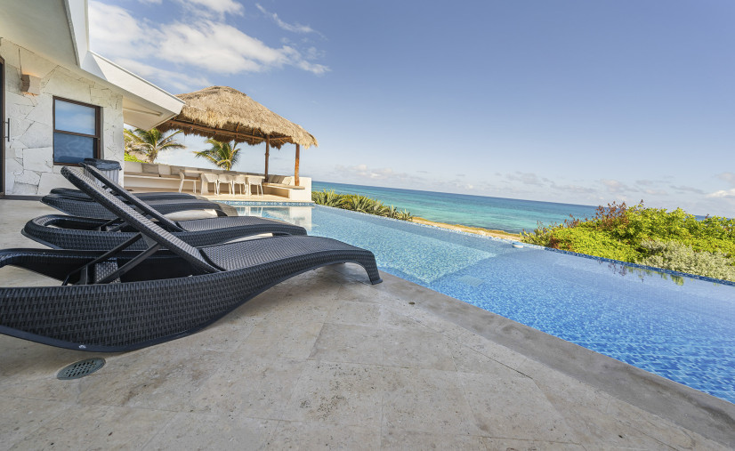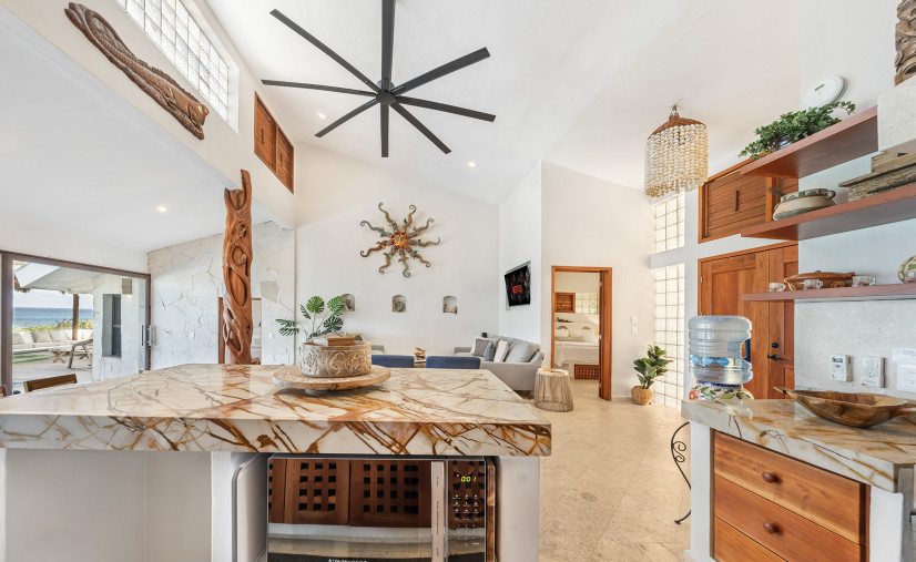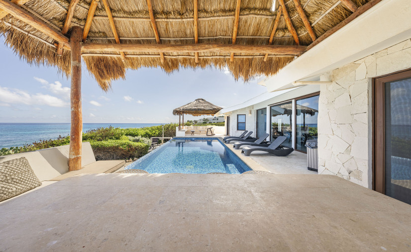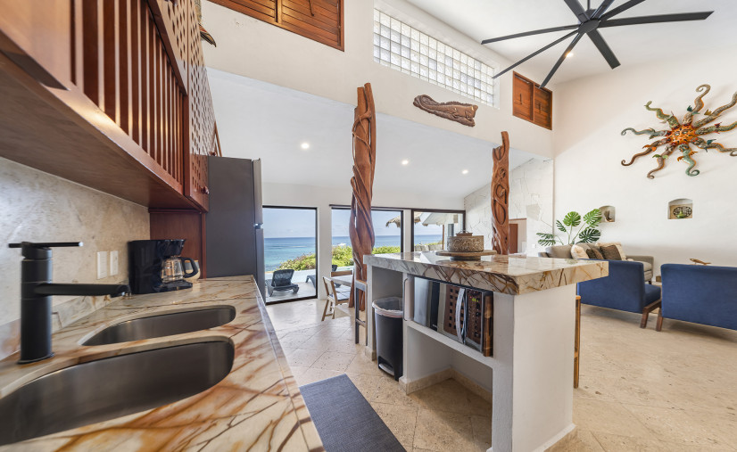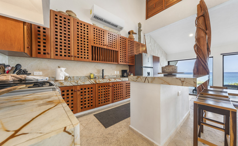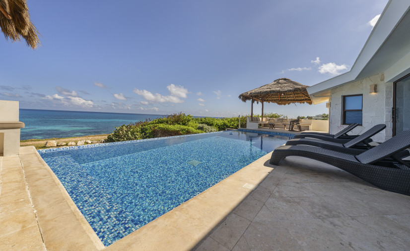 Unobstructed views of the Caribbean Sea, pool, and patio — yes, even while you’re chopping limes