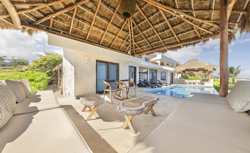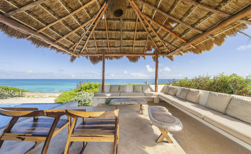 South Palapa: Outdoor living room with comfy seating and coffee tables — prime sunset-cocktail territory