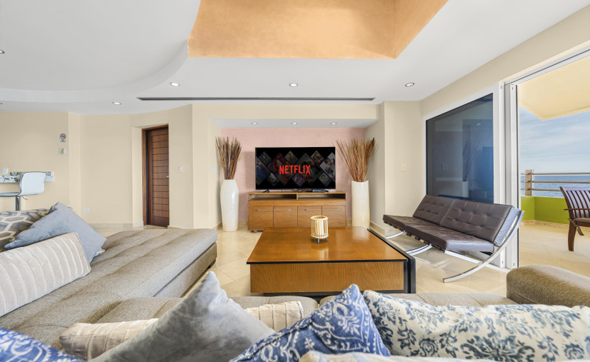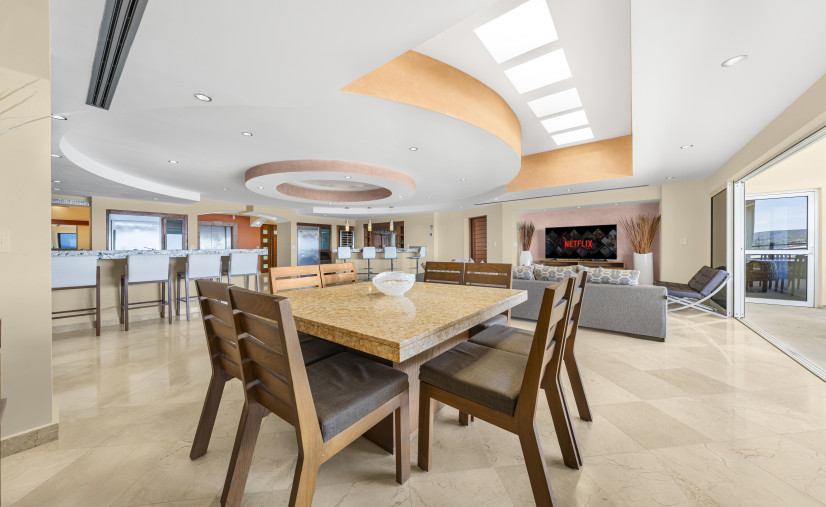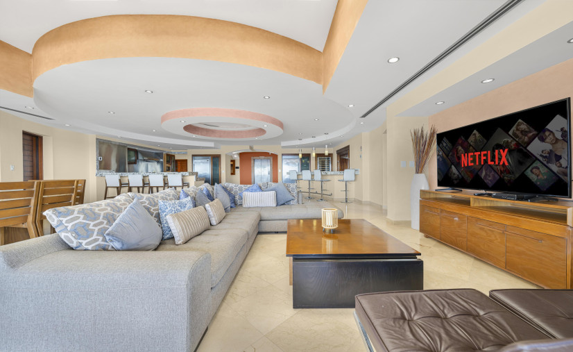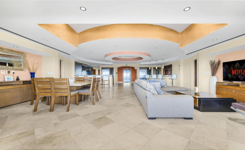 This one of a kind 4 bedroom 5 full bath 4,000 square foot penthouse has it all! The master suite with its king size bed and luxurious bathroom that you have to see to believe is eloquently decorated with the finest materials. The 3 guest suites are just as luxurious, each with 2 queen beds and a full bathroom in each suite. The open floor plan combines the living room, dining room, kitchen and bar area which make this an entertainer's dream. The kitchen comes well equipped and has a large refrigerator and a separate freezer, large chefs oven and stove top, wine fridge, dishwasher and all the cooking utensils needed to prepare your own meals if needed. Let's not forget about the spectacular views that are visible from every room, including the two private patio areas that come with their own private jacuzzi tub, lounge chairs and barbecue area. Private access-elevator opens right into the penthouse. This is not your ordinary east cape rental.