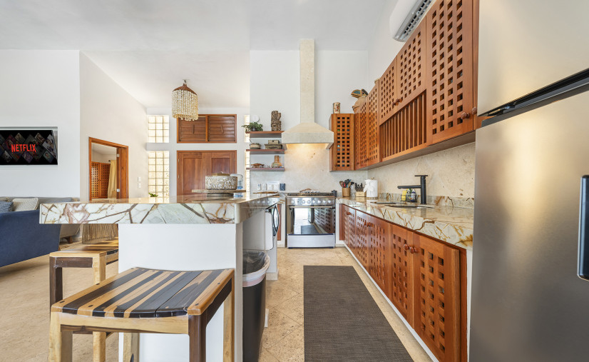 Unobstructed views of the Caribbean Sea, pool, and patio — yes, even while you’re chopping limes