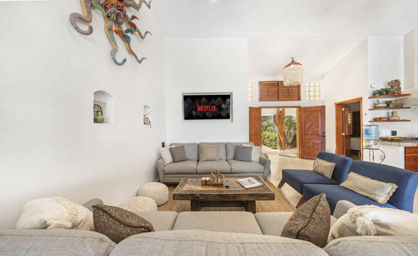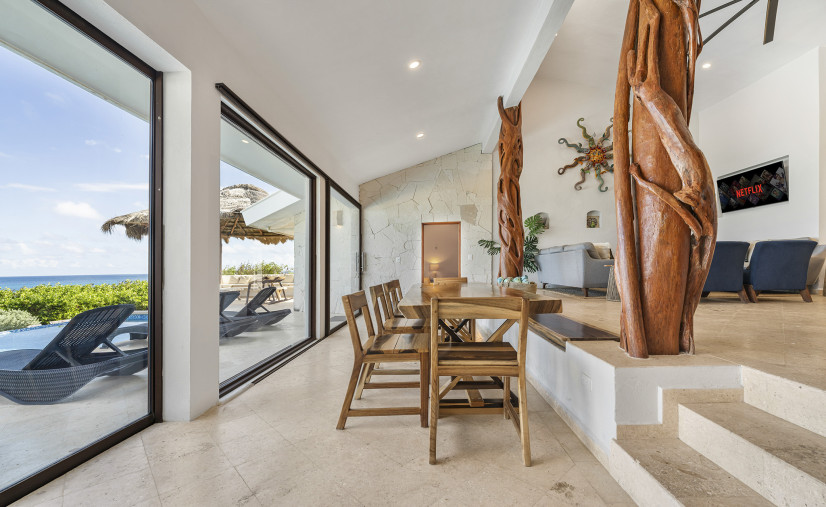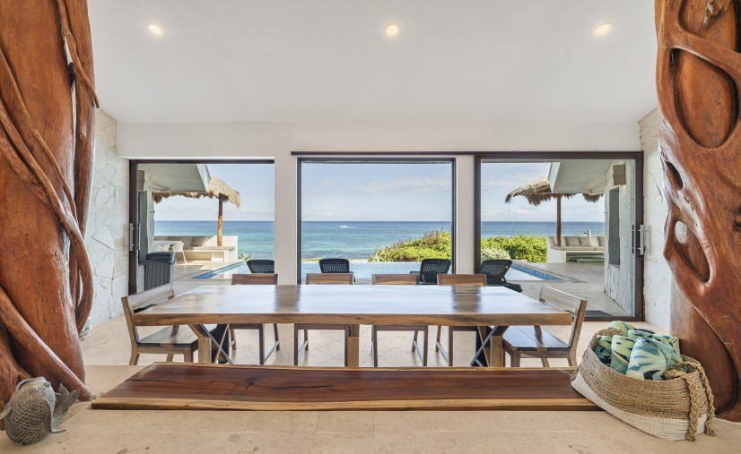 Casa Toloc’s extra-large entertaining space features 20+ feet of glass framing those jaw-dropping ocean views.