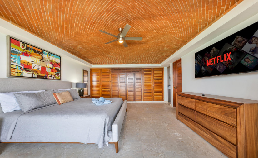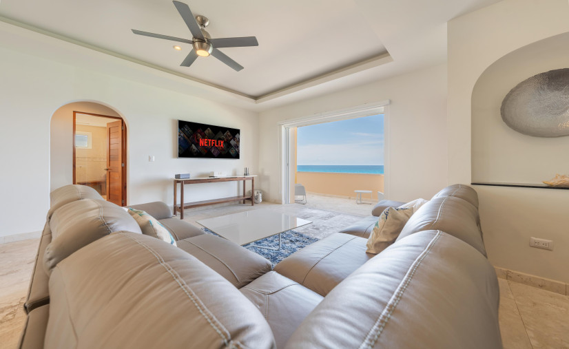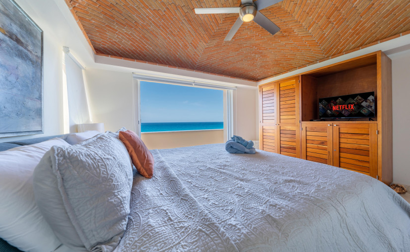 This dreamy condo is basically a front-row seat to the Caribbean Sea—wall-to-wall glass doors, breezy open layout, and a balcony that doesn’t quit. Every bedroom? King or queen beds, domed brick ceilings (hello drama!), and ocean views that’ll make your jaw drop.