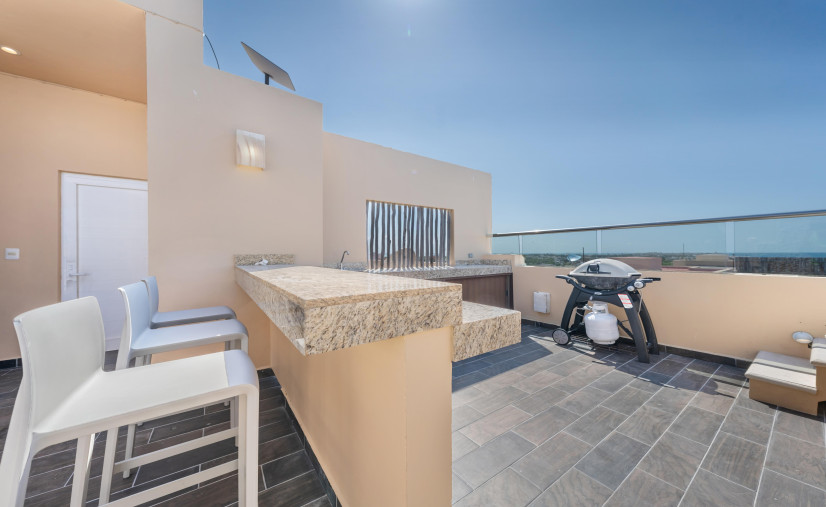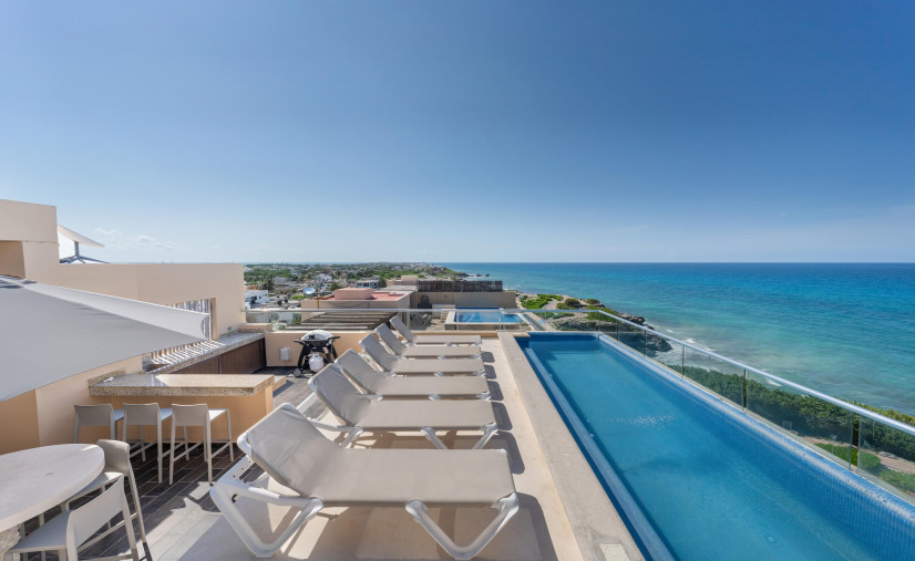Whip up something fab in the chef’s kitchen, binge in one of the two chill living rooms, or fire up the grill on your private rooftop oasis—with pool, lounge, outdoor kitchen, and Cancun skyline views that scream main character energy.